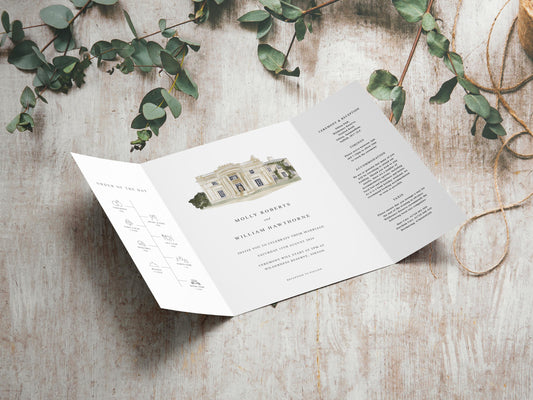 Coloured Illustrated Venue Gatefold Wedding Invitation