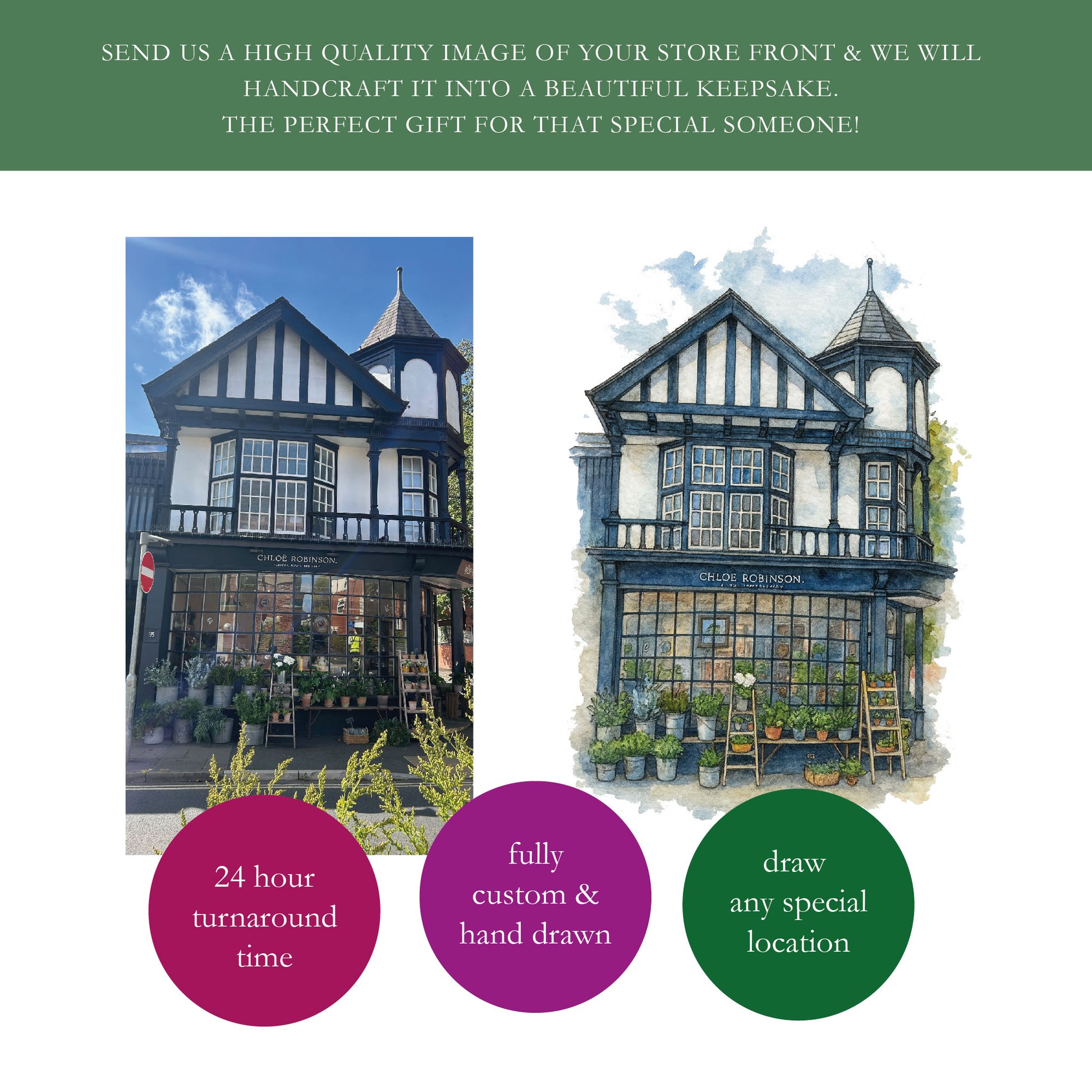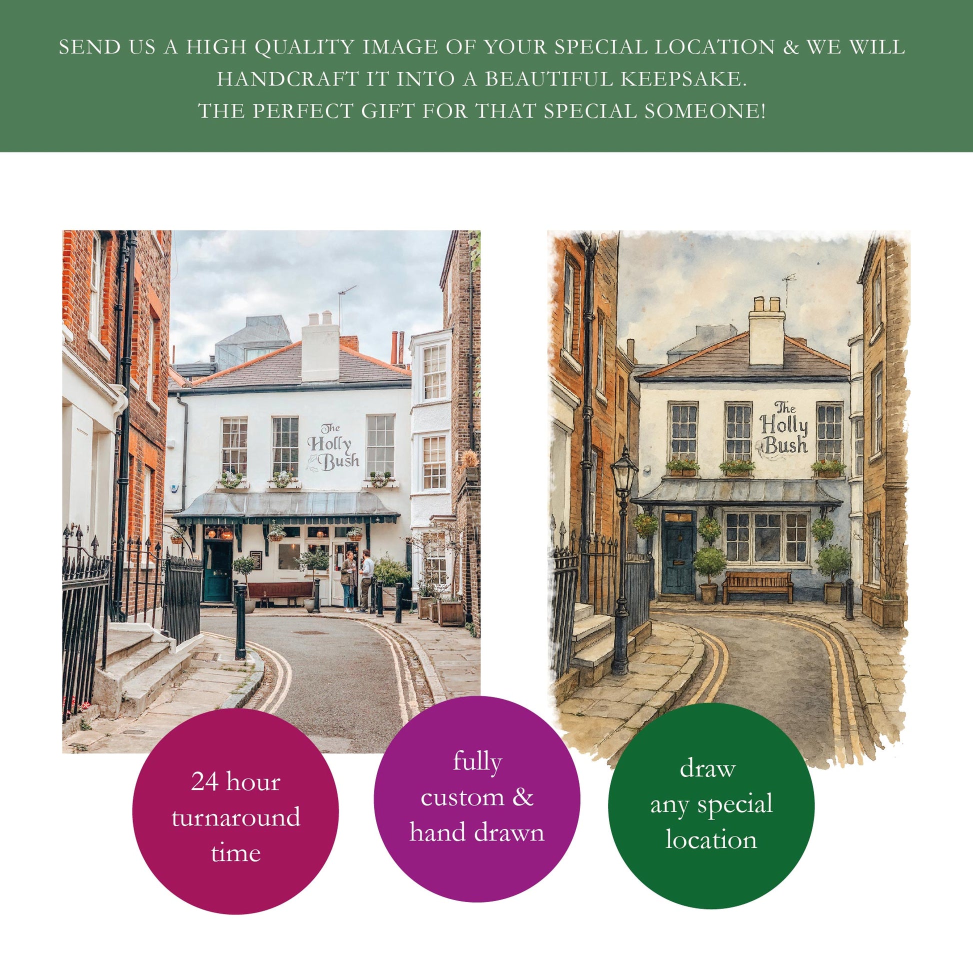 A personalised illustration of the place where your story began.